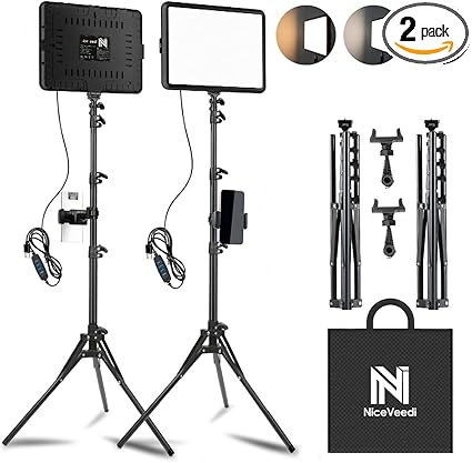 - 【Package List & Customer Service】There will be 2 LED studio light panels with cable. adjustable tripod stand for each light panel, 1 user manual, 1 storage bag, 2 USB-C adapters. We offer 1 year warranty, if there is any problem, please feel free to let us know.
