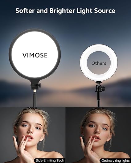 - Full-Screen Desktop Large Ring Light: Vimose ultra-thin full-panel LED ring light offers a larger lighting area, ideal for Zoom meetings, video conferences, live streaming, makeup, art classes and more. With advanced side-emitting technology, it delivers soft, natural, and cold light that protects your eyes, ensuring even illumination across your workspace.